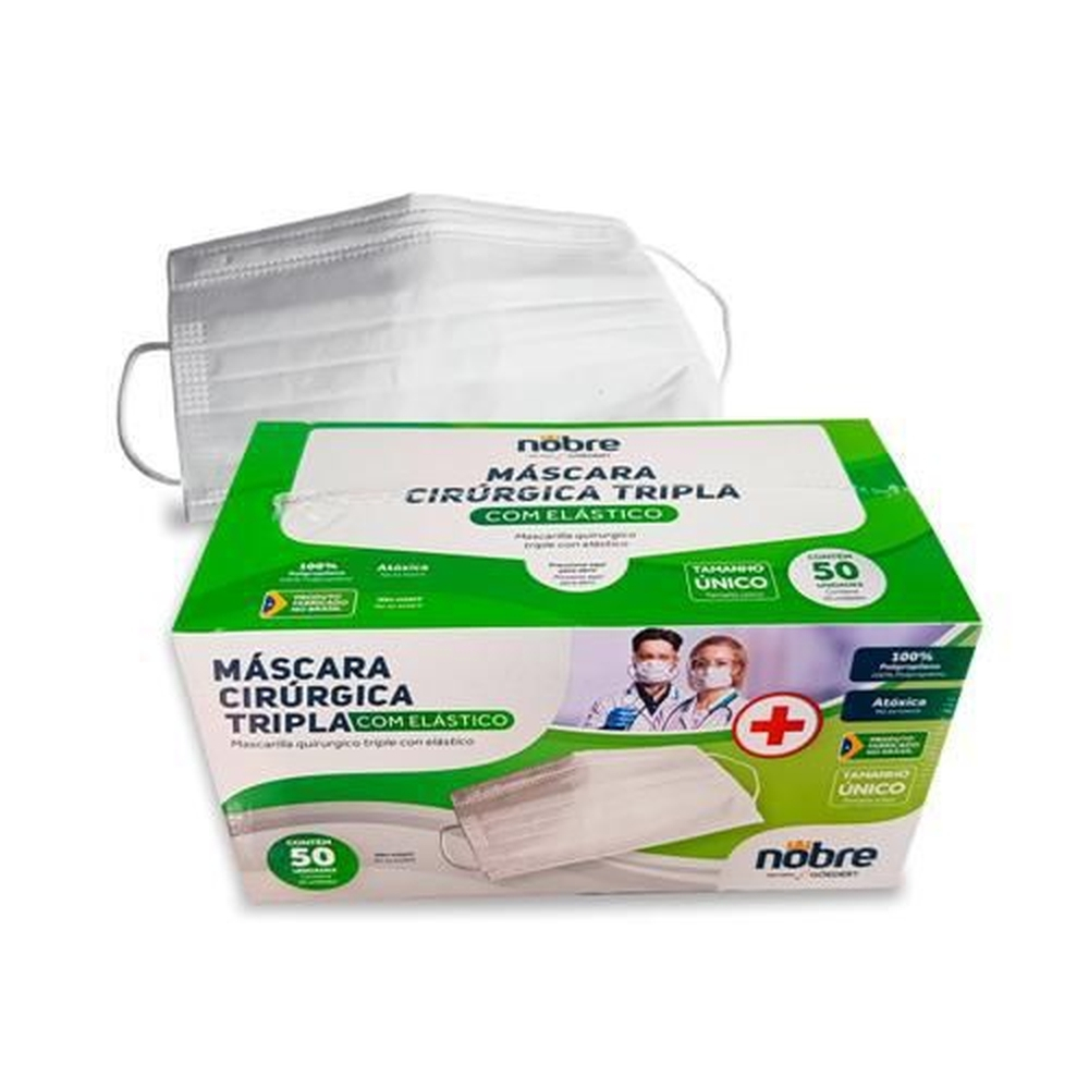 Máscara Cirúrgica Tripla C/Elático Caixa C/50 Unidades – Nobre